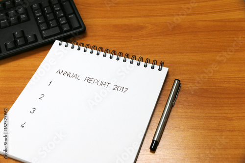 Annual report 2017 on paper milestones aligned on the desk .are representative of success in the past and goal for the future in this 2018
