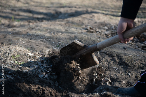 garden, ground, shovel, dirtied, gardening, person, standing, digging, equipment, nature, gardener, tool, man, 1, farming, working, countryside, holding, activity, dig