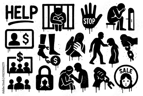 Anti human trafficking symbols in bold stencil protest style, Transparent Background