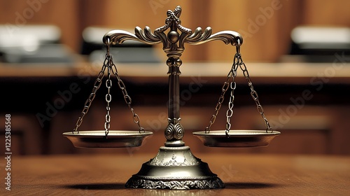 Antique Balance Scale Symbolizing Justice and Fairness in Courtroom