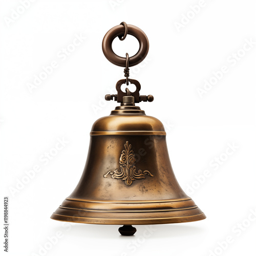 Antique Brass Bell with Ornate Detail Hanging Isolated