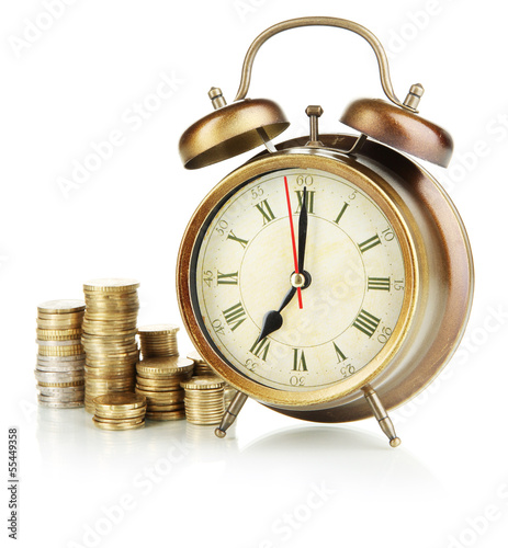 clock, coin, isolated, white, alarm, alert, awake, background, black, business, circle, closeup, colours, colourful, concept, credit, day, deadline, deposit, dial, early, elegant, exact, hours, idea, instant, late, light, measurement, minute, money, morning, precise, pressure, reminder, second, single, sleep, snooze, time, timer, urgent, arousing, waking, work