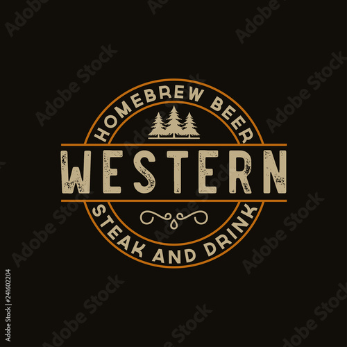 Antique frame border label engraving retro Country Emblem Typography for Western Bar/Restaurant Logo Design inspiration. Elements Business Sign Hipster Logo Identity