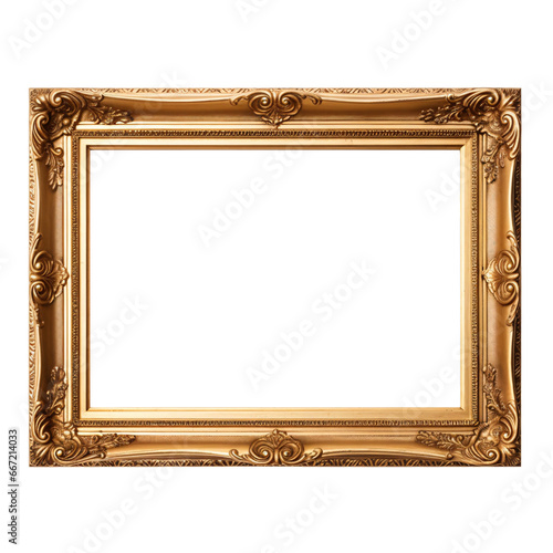 Antique gold picture frame isolated, Luxury horizontal rectanglepicture frame