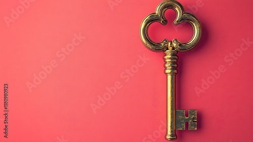 key, antique, gold, gold, red, background, vintage, retro, metal, ornate, lock, secret, access, solution, success, opportunity, treasure, mystery, power, wealth, unlock, potential, future, hope, door, entrance, passage, journey, discovery, old, classic, elegant, luxury, symbol, concept, design, element, isolated, object, texture, closeup, detail, single