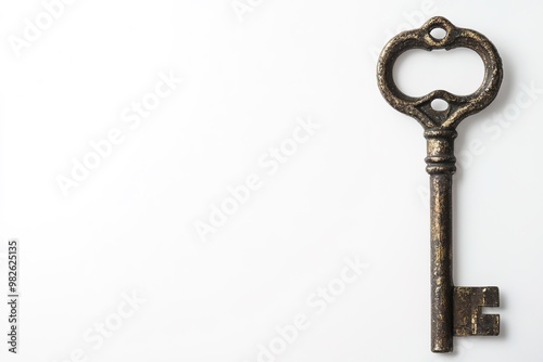 key, antique, old, metal, object, white, background, copy space, vintage, security, unlock, mystery, access, closeup, isolated, rust-eaten, texture, history, single object, iron, safety, secure, entry, simplicity, privacy, retro, aged, patina, locksmith, treasure, traditional, protection, simple, brass, collectable, ornate, craftsmanship, artifact, design, home, lock, ownership, padlock, blank, empty space