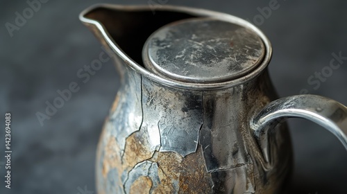 Antique Silver Teapot Displaying Beautiful Patina with Detailed Cracks and a Shiny Lid