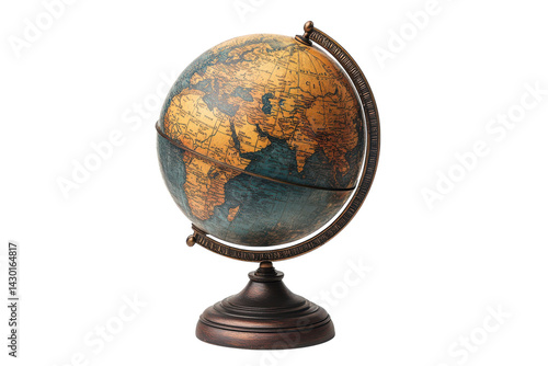 Antique style globe showcasing world map details a vintage travel artifact perfect for home decor featuring rich bronze tones against a on transparent background