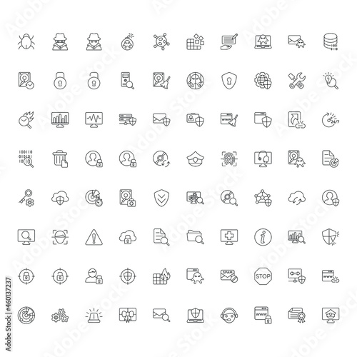 icon, anti virus, virus, cyberspace, security, hacker, cyber, bug, trojan, web, website, browser, protection, network, datum, storage, set, vector, signs, outline, line, symbol
