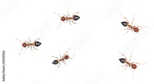 ants on a white wall. macro