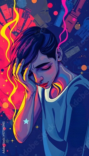 anxiety, illustration, colourful, enhance, mental health, stress, fear, worry, psychology, vibrant, abstract, artwork, emotion, mental disease, panic, creative, conceptual, design