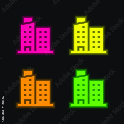 Apartment four color glowing neon vector icon