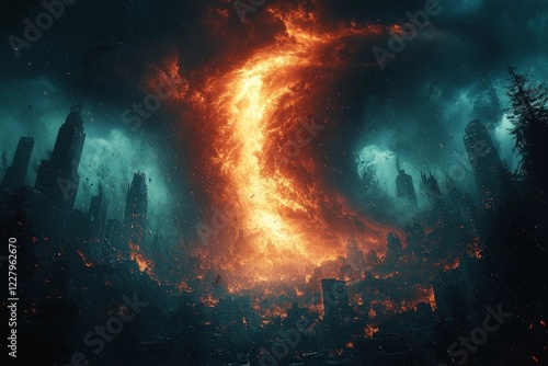 apocalypse, storm, disaster, tornado, city, landscape, urban, destruction, chaos, fury, nature, skyline, turbulence, devastation, ruin, crumbled, emergency, calamity, catastrophy, gale, hurricane, blizzard, cyclone, vortex, lightning, inferno, flames, fire, burning, crumbling, decay, cataclysm, doomsday, armageddon, end, earth, judgement, day, power, force, intensity, rage