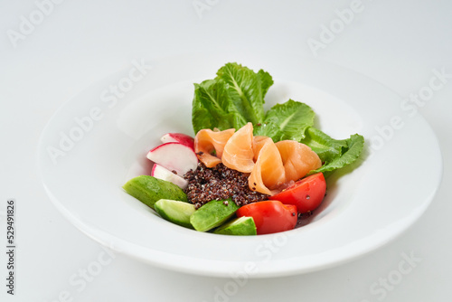 salad, food, vegetable, tomatoes, dinner, healthy, meal, lettuce, plate, green, vegetable, diet, fresh, epicure, meat, lunch, white, chicken, tomatoes, cheese, vegetarian, delicious, cookery, cucumber