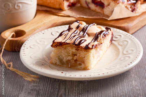 apple, baked, breakfast, brunch, cake, chocolate, dessert, drizzle, food, fruit, homemade, icing, many, pastry, pear, pie, slice, snack, sponge, sweet, topping, treat
