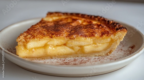 Apple custard pie slice, kitchen, closeup, dessert, food photography