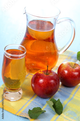 Apple juice and fresh red apples