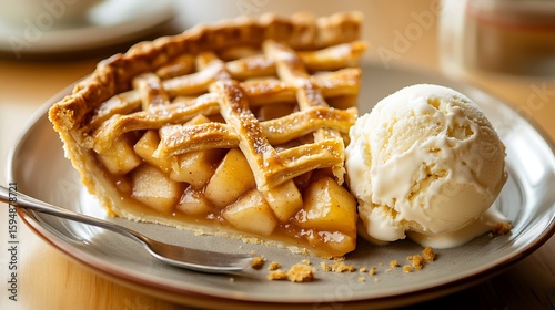 Apple Pie Slice with Lattice Crust and Vanilla Ice Cream