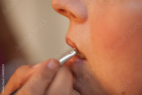 Applying make up on the lips