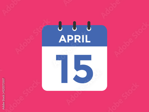 April 15 calendar reminder. 15th April daily calendar icon template. Vector illustration