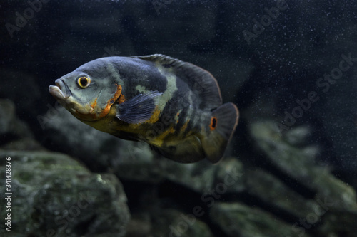 Aquarium fish. Cichlid astronotus, or Oscar. Freshwater fish. Astronotus Tigris. The bright Oscar fish is a South American freshwater fish from the cichlid family.