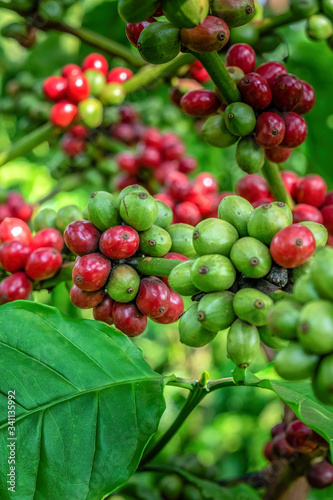 Arabica and Robusta tree in Coffee plantation, Buon Me Thuot or Buon Ma Thuot, Dak Lak, Vietnam.