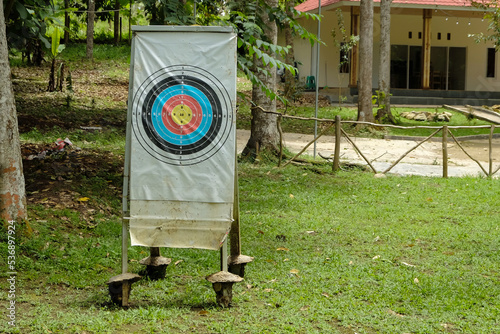 Archery targets in the archery field are used for practising archery, outdoors