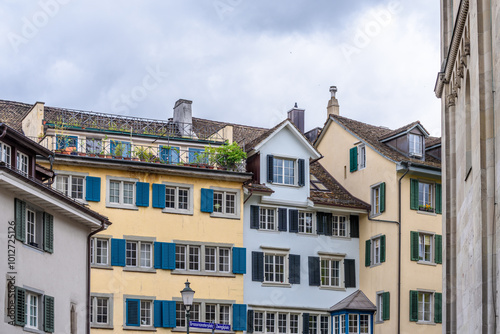 Architectural Elements of Historical buildings in the center of Zurich, Switzerland.