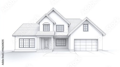 house, architecture, drawing, design, vignetting, home, building, modern, suburban, residential, sketching, plan, two-story, construction, real estate, illustration, line art, monochrome, white background, copy space, isolated, architectural, contemporary, vector, outline, front view, garage, window, door, roof