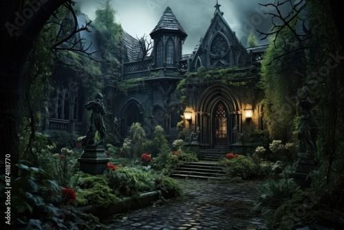 arch, arched, architecture, background, black, blank space, building, building exterior, built structure, copy space, copy space, bungalow, darkness, downloadable, fantasy, fear, forest, garden, green, hd, hi-res, history, horror, house, housing, image, jungle, landscape, light, luxury home, monochrome, mystery, nature, night, old, outdoors, photo, church, plant, real, scenery, screenshot, sky, spirituality