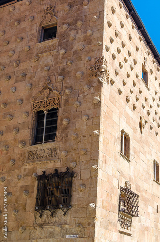 Architecture in Salamanca, Spain, view of the famous Casa de las Conchas