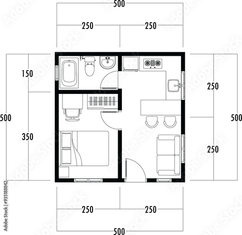 Architecture plan with furniture. home floor plan, isolated on white background, stock illustration. eps 10