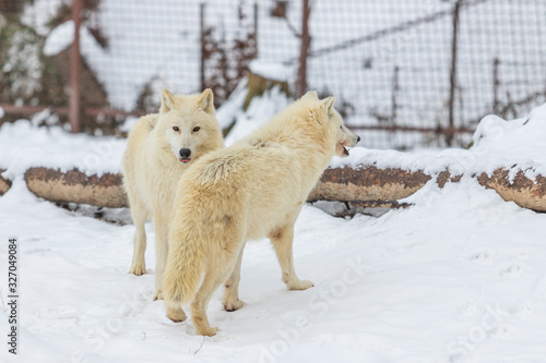 dog, snow, wolf, animal, white, winter, arctic, husky, nature, pet, cold, mammal, fur, wild, wildlife, samoyed, canino, forest, predator, wolf, puppy, cute, outdoors, polar, female, dominant, proudly, proud, profile, portrait, omega, pair, grey, mate, horizontal, eye, looking, standing, tundra, black, paw, 1, tail