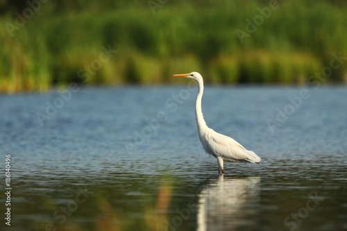 Ardea alba. The wild nature of the Czech Republic. Spring Glances. Beautiful nature of Europe. Big bird in water. Green color in the photo. Nice shot.