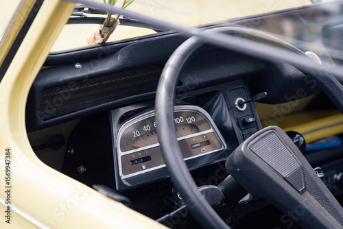dashboard, steering wheel, classic car, speedo, cockpit, instrument, duck, german