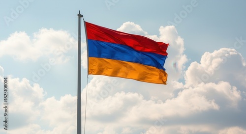 armenia, flag, waving, independence, national, sky, celebration, patriotic, freedom, pride, emblem, country, cloud, tall, pole, symbol, sovereignty, oneness, heritage, fly, victory, culture, nation, banner, high, flutter, liberty, skyline, horizon, identity, ceremony, tribute, elevation