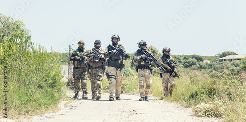 armed, operation, force, infantry, infantryman, commando, combatant, shooter, military, arm, conflict, battlefield, force, combat, armoring, uniform, camouflage, munition, weapon, gun, firearm, team, armament, group, crew, backpack, back, move, walk, squad, run, tactical, aim, training, mission, attack, helmet, road, rush, breakthrough, engage, storming, action, army, soldier, special, troop, war, warfare