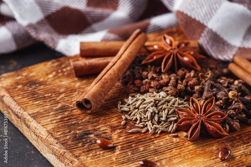 chinese, 5, anise, star, pepper, clove, cinnamon, spice, seasoning, cooking, herb, ingredient, cookery, spicey, favor, traditional, food, background, cumin, aroma, culinary, natural, brown, seed, dark, wood, kitchen, sichuan, fennel, peppercorn, dry, rustic