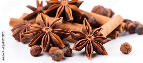 Aromatic Cinnamon Spice Sticks and Powder on Minimalistic White Background