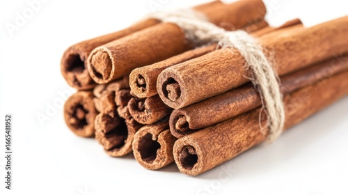 Aromatic cinnamon sticks tied together, a culinary spice and flavoring