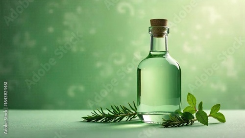 Aromatic Herbal Essence in Glass Bottle with Fresh Herbs
