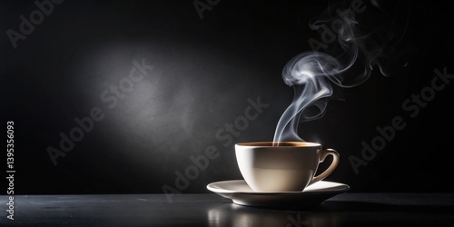 Aromatic Steam Rising from a White Coffee Cup on a Dark Surface
