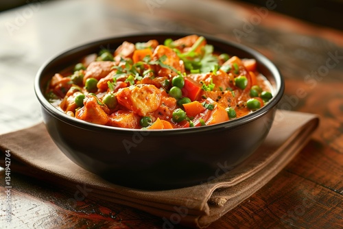 curry, tofu, vegetable, bowl, dish, food, cookery, asian, indian, sauce, pea, carrot, tomatoes, vegan, vegetarian, meal, lunch, dinner, delicious, healthy, spicey, aromatic, fresh, greener, cilantro, parsley, table, wooden, brown, clothes, ceramic, closeup, studio, indoor, serving, tasty, alimentary, plate, receipe, cook, eat, favor, presentation, epicure, culinary, background, organic, ingredient