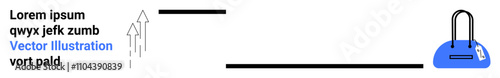 Arrow graph symbolizing growth beside a bag with ID tag, thin horizontal lines. Ideal for growth, business, progress, ideas, success, strategy development. Landing page