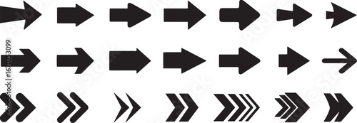 arrow, icon, symbol, graphic, design, interface, modern, simple, clean, black, collection, multiple, variation, direction, movement, forward, right, double, chevron, stacked, isolated, white background, navigation, pointer, click, next, transport