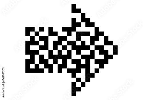Arrow icon with classical shape and pixelated texture isolated on white background. Sign for button, link, game design, app or other web interface. Retro style. Vector illustration.