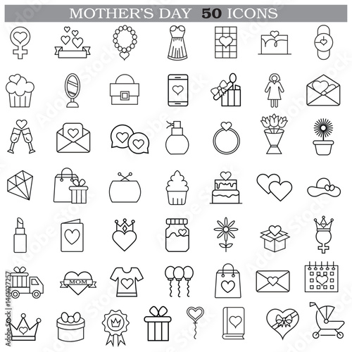 Art & Illustration A collection of minimalistic line icons themed around Mother's Day, Mother's Day Line Icons Set