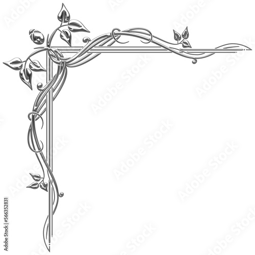 corner, art, chrome, silver, decoration, vector, illustration, leaf, background, white, leaf, art deco, vintage, floral, drawn, wrapping, greeting card, cover, banner, drawing, ornament, elegant, decorative, grey, art deco, silhouette, symbol, isolated, isolated on white, retro, border, pattern, foliage
