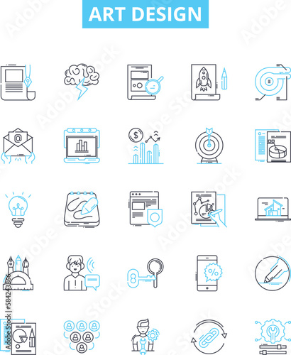 Art design vector line icons set. Graphic, Craft, Drawing, Sculpting, Painting, Textile, Printmaking illustration outline concept symbols and signs