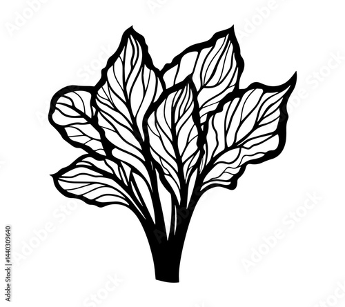 swiss chard, leaf, plant, green, organic, health food, natural, botanical, gardening, agriculture, nourishment, hand-drawn, black-and-white, line art, vignetting, fresh, monochrome, outline, minimalistic, realistic, environmentally friendly, healthy eating, vegetarian, vegan